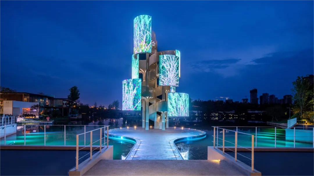 位于成都的麓湖水城是中國(guó)獨(dú)特的陸生生態(tài)基底轉(zhuǎn)為湖泊生態(tài)基底的成功案例,全球首座水上多媒體美術(shù)館——生命塔就位于這里。利亞德助力打造的生命塔,讓麓湖不斷拓寬城市藝術(shù)表達(dá)的邊界和維度,也讓藝術(shù)的無(wú)限可能跨入生活的無(wú)限可能。